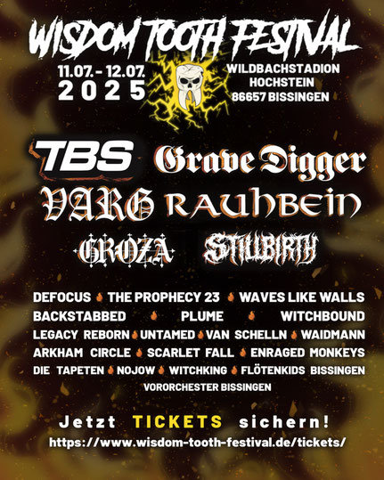 Hier könnt ihr in Erinnerungen (Bilder) an unsere bisherigen Wisdom Tooth Festivitäten schwelgen. Die Bands, die im jeweiligen Jahr gespielt haben, findet ihr unten nochmals auf den Plakaten.